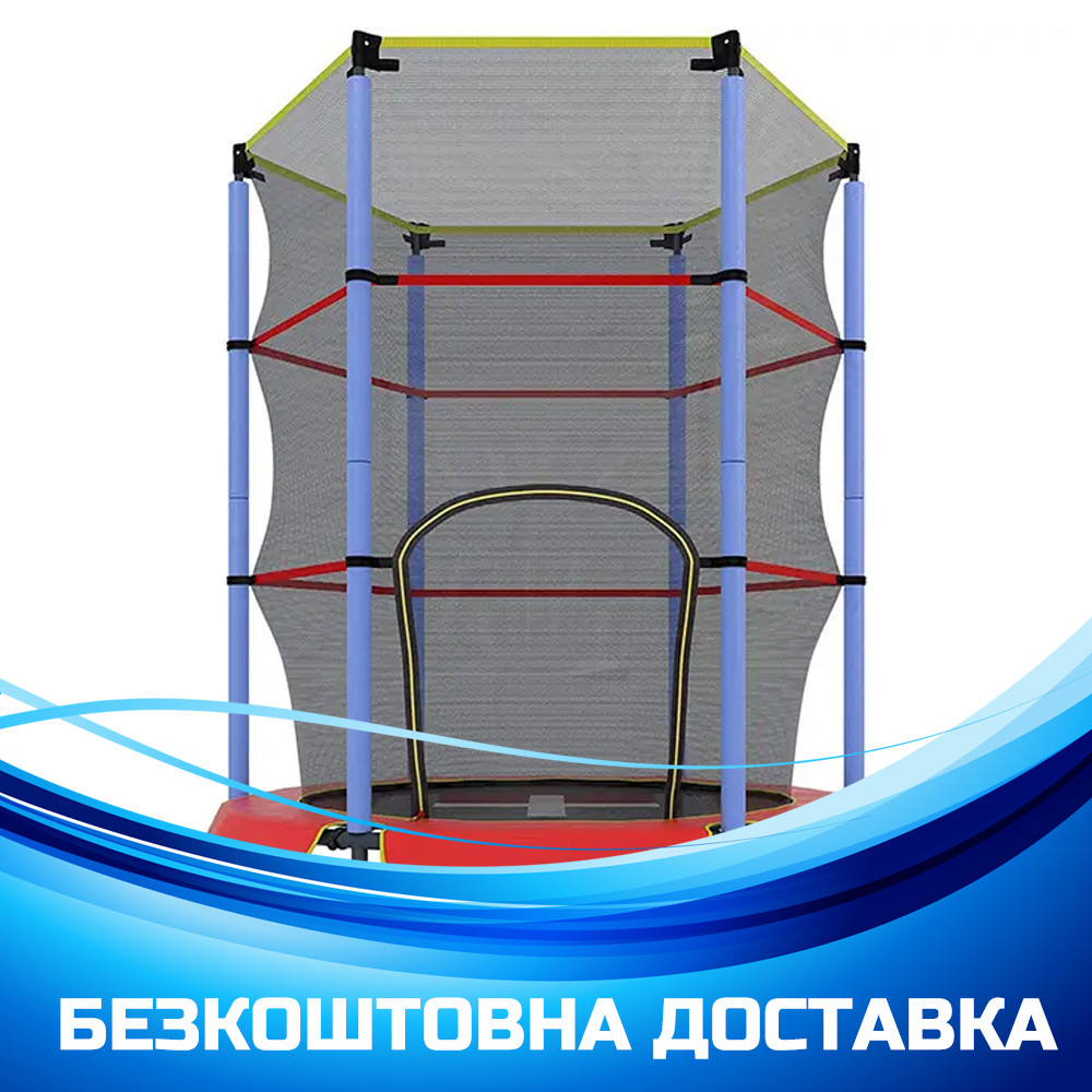 Дитячий батут на пружинах із сіткою (діаметр 140 см) Tilly RJ-0084 Червоний із синім